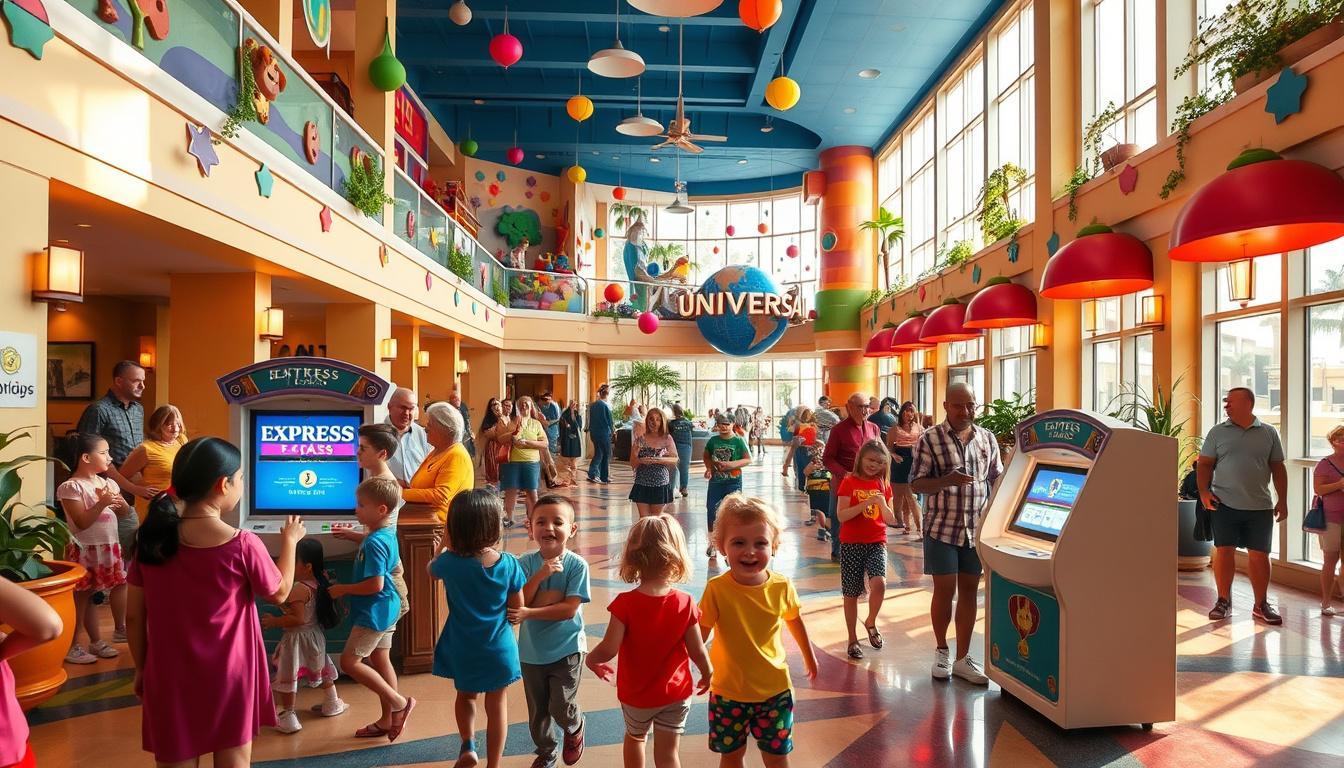 Quais acomodações em Universal garantem acesso expresso para crianças?